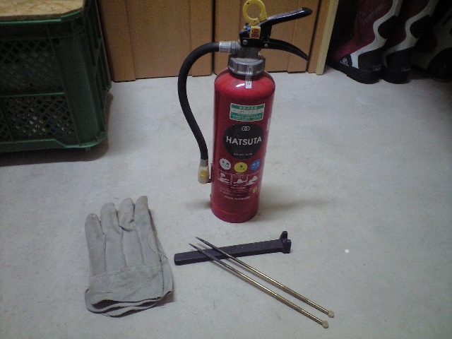 薪ストーブを使うのにご用意したものは、火箸、手袋と消火器、温度計は付属してたんで、