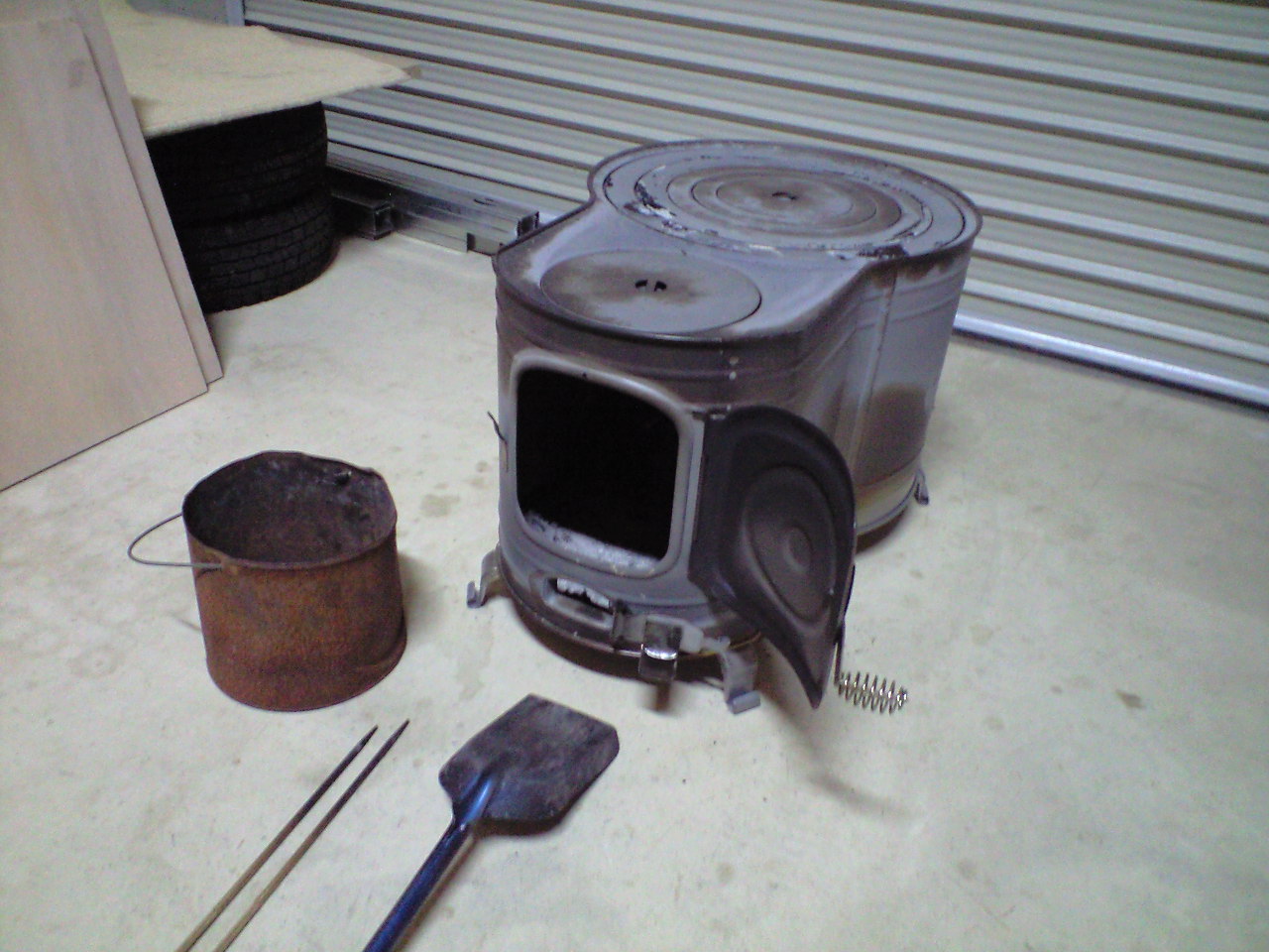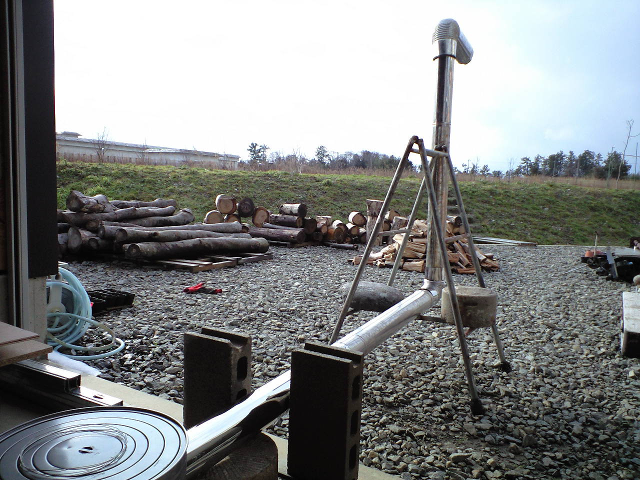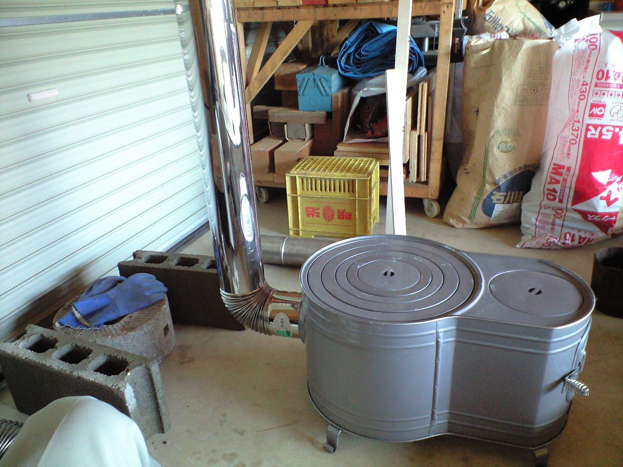 急遽横引き煙突一本に変更して、何とか使用しました。