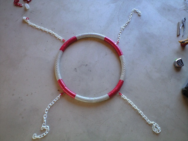 浮き輪・水道ホース・ダクト管・合板を切り抜くなど…。