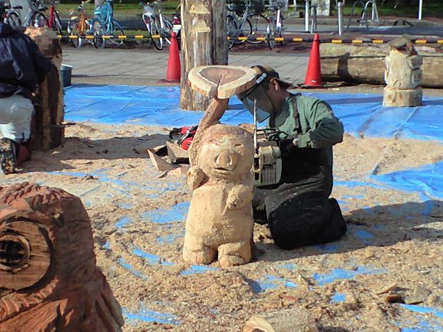 そこで、チェーンソーによる、ガービングを見てきたんですよ♪